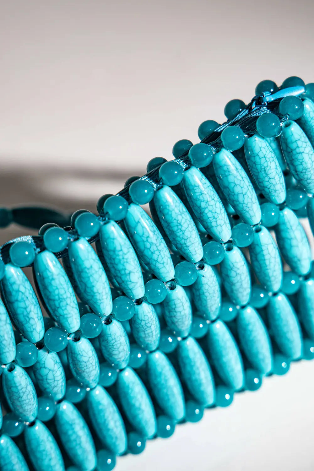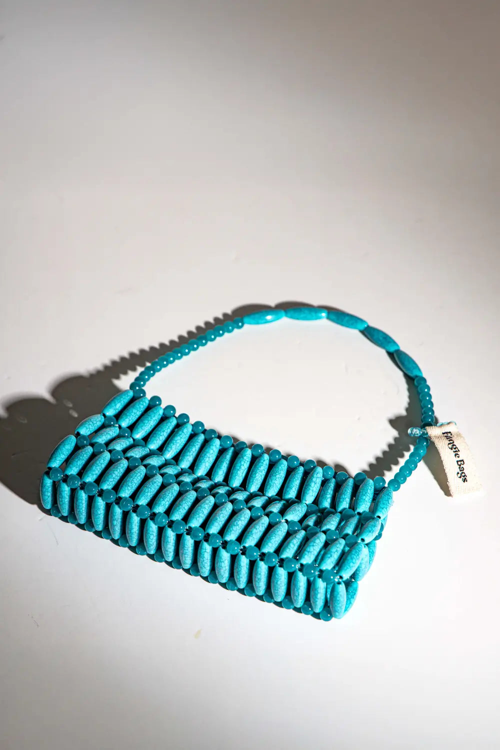 Elevate your accessory game with this unique shoulder bag crafted from stunning blue marble stones. Designed for mini bag enthusiasts, it features a striking combination of two stone shapes oval and circle offering a blend of elegance and modern charm.